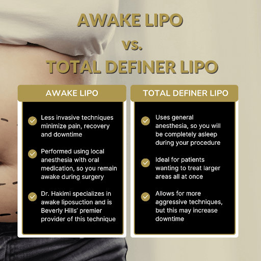 Dr. Michael Hakimi is a board-certified plastic surgeon who specializes in procedures of the face and body. He is passionate about modern approaches and is a leader in awake liposuction, an advanced technique that is performed using local anesthesia, resulting in minimal discomfort and a shorter recovery time. Dr. Hakimi’s reputation as an expert in awake liposuction has made him highly sought-after by those in Beverly Hills and beyond who prefer a less invasive way to permanently eliminate fat from targeted areas of the body.
