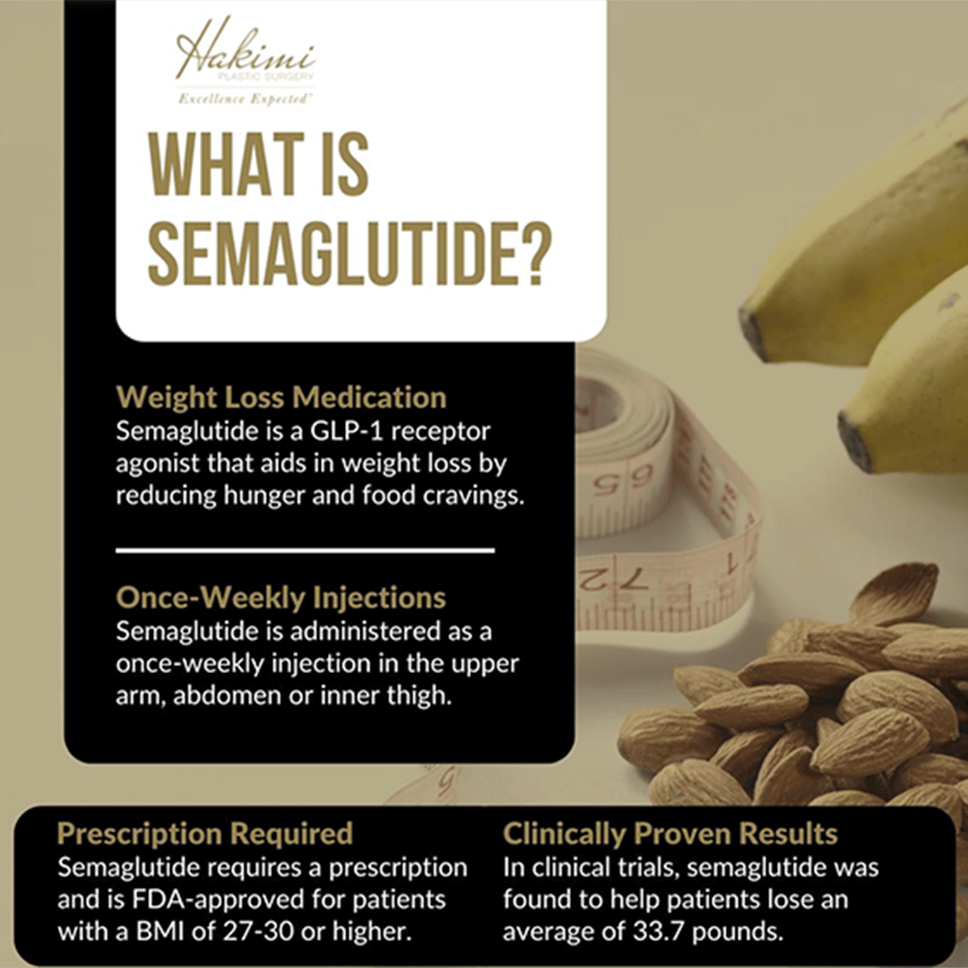 Semaglutide is the latest breakthrough in medical weight loss, and for good reason. Medical experts and celebrities alike have endorsed semaglutide as an effective weight management tool due to its safety, effectiveness and clinically proven results. If you’d like to discover how “skinny shots” can help you achieve your weight loss goals, contact Hakimi Plastic Surgery today. Board-certified plastic surgeon Dr. Hakimi and his experienced team can develop a customized treatment plan to help you lose weight and keep it off long-term. Complete our online contact form or call our office in Beverly Hills at 424-239-5201 to get started.